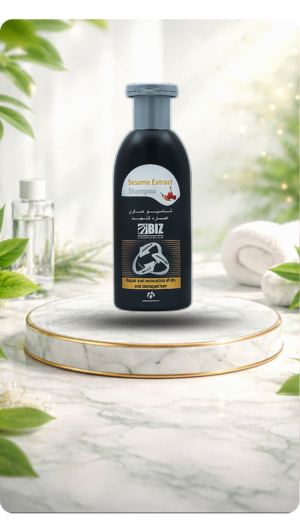 شامپو حاوی روغن کنجد بیز ترمیم کننده مو و مناسب برای موهای خشک و شکننده است.
